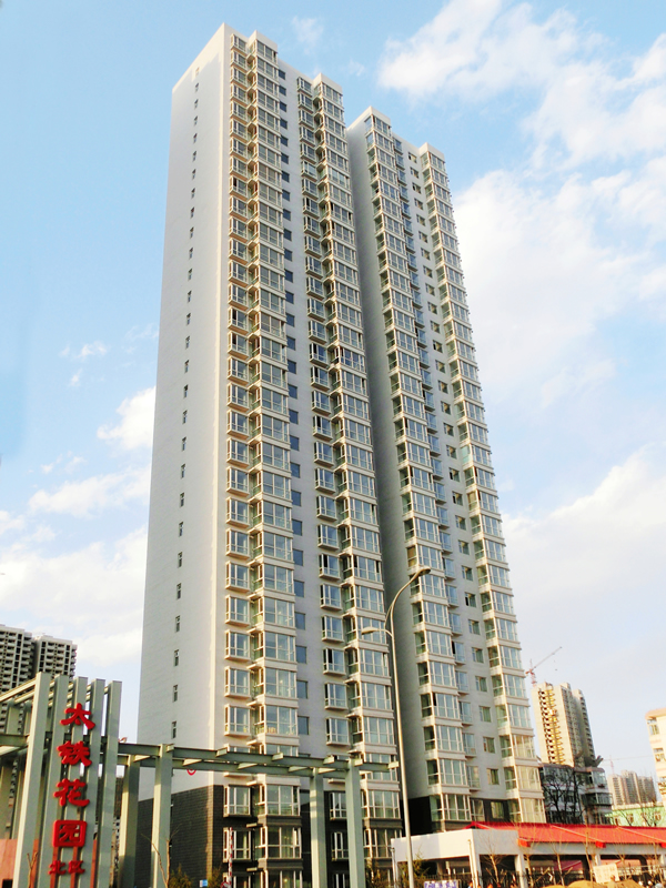 太鐵花園住宅小區1#、3#高層住宅樓位于大東關街6號,主體結構為剪力墻結構,1#高層住宅樓共有三個單元,東西長53.3M,南北寬18.3M。地上三十二層,地下一層,一梯叁戶,共288戶?偨ㄖ娣e為27731.87㎡,建筑高度93.10m。3#高層住宅樓共有兩個單元,東西長38.0M,南北寬16.8M。地上三十二層,地下一層,一梯兩戶,共128戶?偨ㄖ娣e為18336.55㎡,建筑高度93.10m。2010年4月15日開始施工,2012年11月20日竣工。